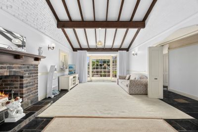 Lounge and dining room opens from kitchen, plus large lounge room with open gas fireplace.